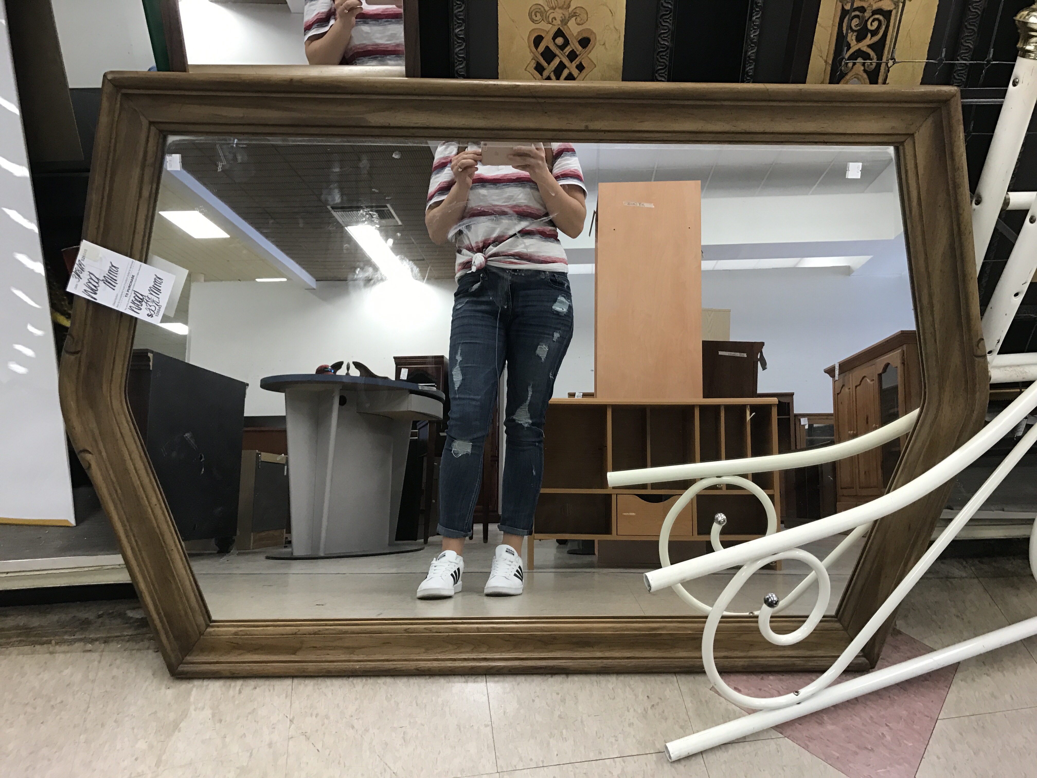 This mirror was only $25 and it’s hard to tell but it’s huge and well made. It’ll be painted but could be an easily missed decor essential in the rough.