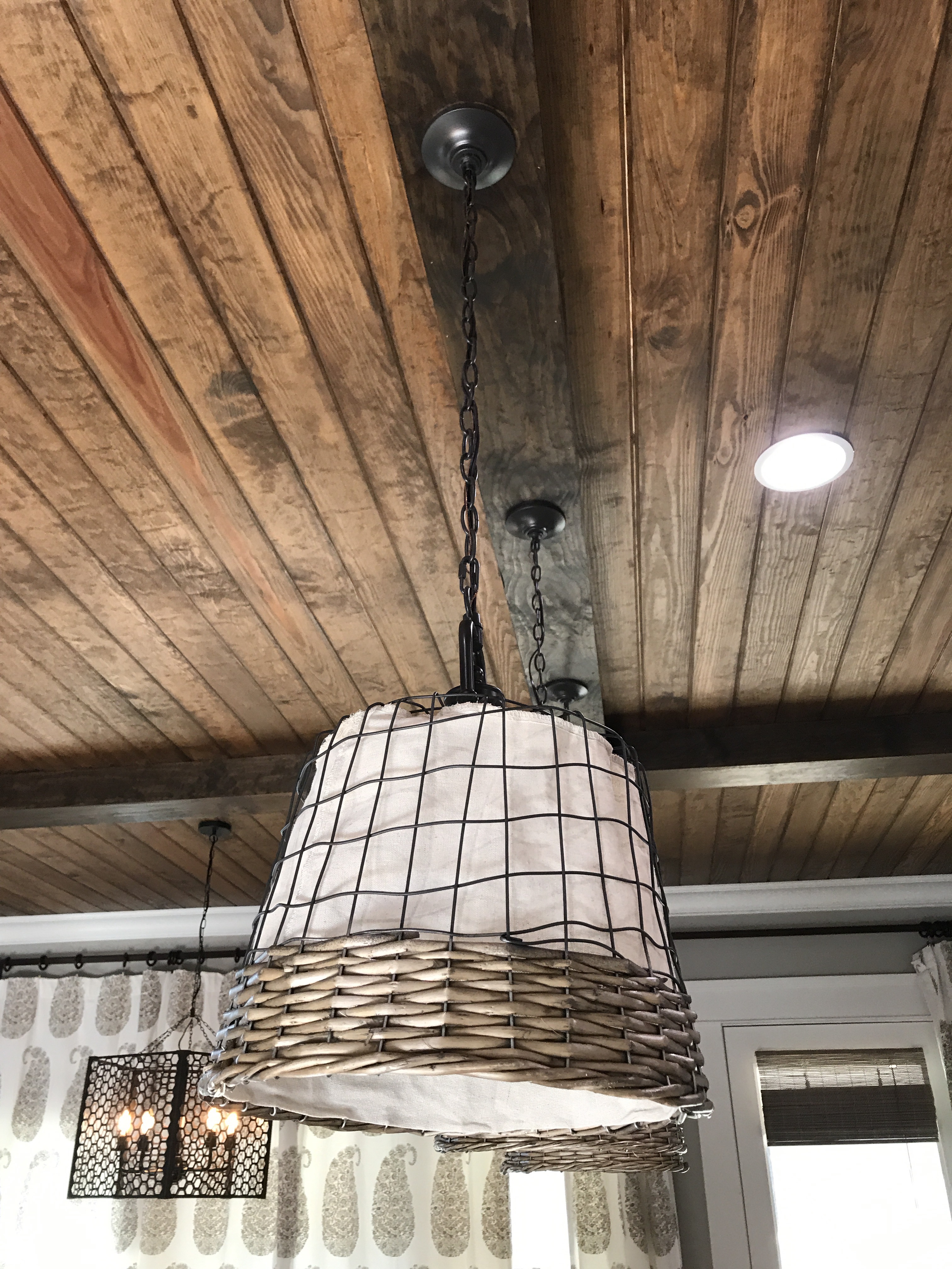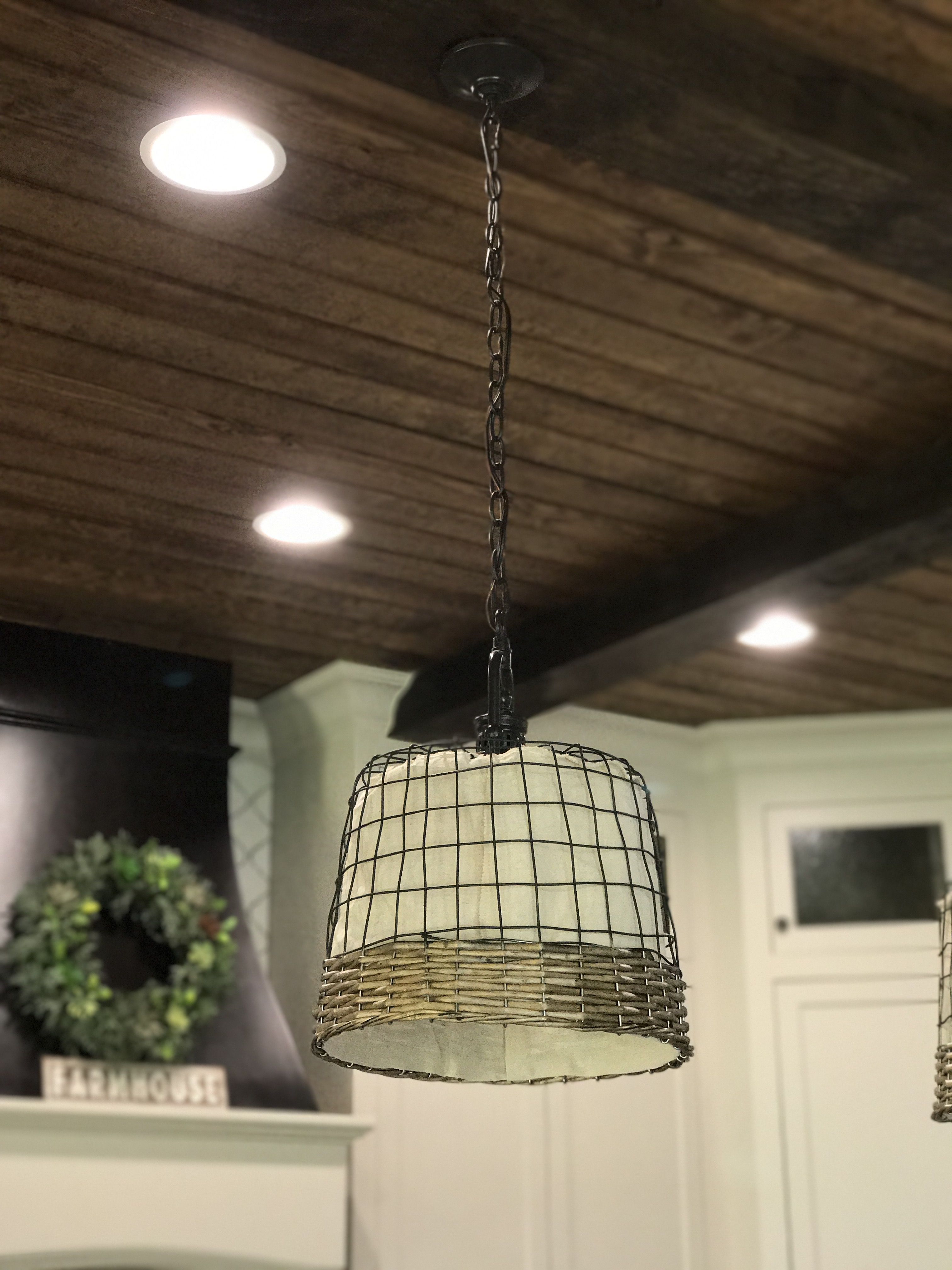I found a bushel basket initially, and a Pinterest picture to confirm my inspo. It was gonna be perfect until Michaels only had one basket I needed. I have two kids, taking them to store is the equivalent of the anxiety the pendants give me. I dragged my two kiddos to the store twice looking for these baskets all the while they have them as displays! I asked if I can just buy them since they are out and they wouldn’t. Not cool. I still like the idea of them and I guess since it’s a cheap fix I can experiment if I ever want to.