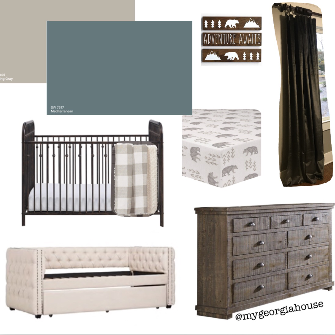 I’m deciding between Sherwin Williams Amazing Gray – shocker it’s all over our house. It’s a great neutral. Or Sherwin Williams Mediterranean.