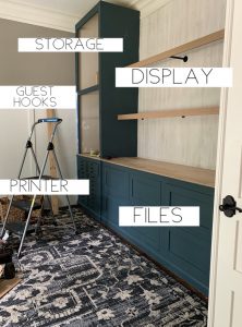 I decided to build some cabinets for my home office that needed an organizational overhaul! They are going a shaker style with inlay cabinet doors. This essentially means my doors will go to the inside of my face frame, but you can also build overlay doors that sit on top. The face frame and doors would all be constructed the same just with different measurements and hinges. Other styles of cabinets can be built differently for example frameless is a box that doesn’t have a face frame.