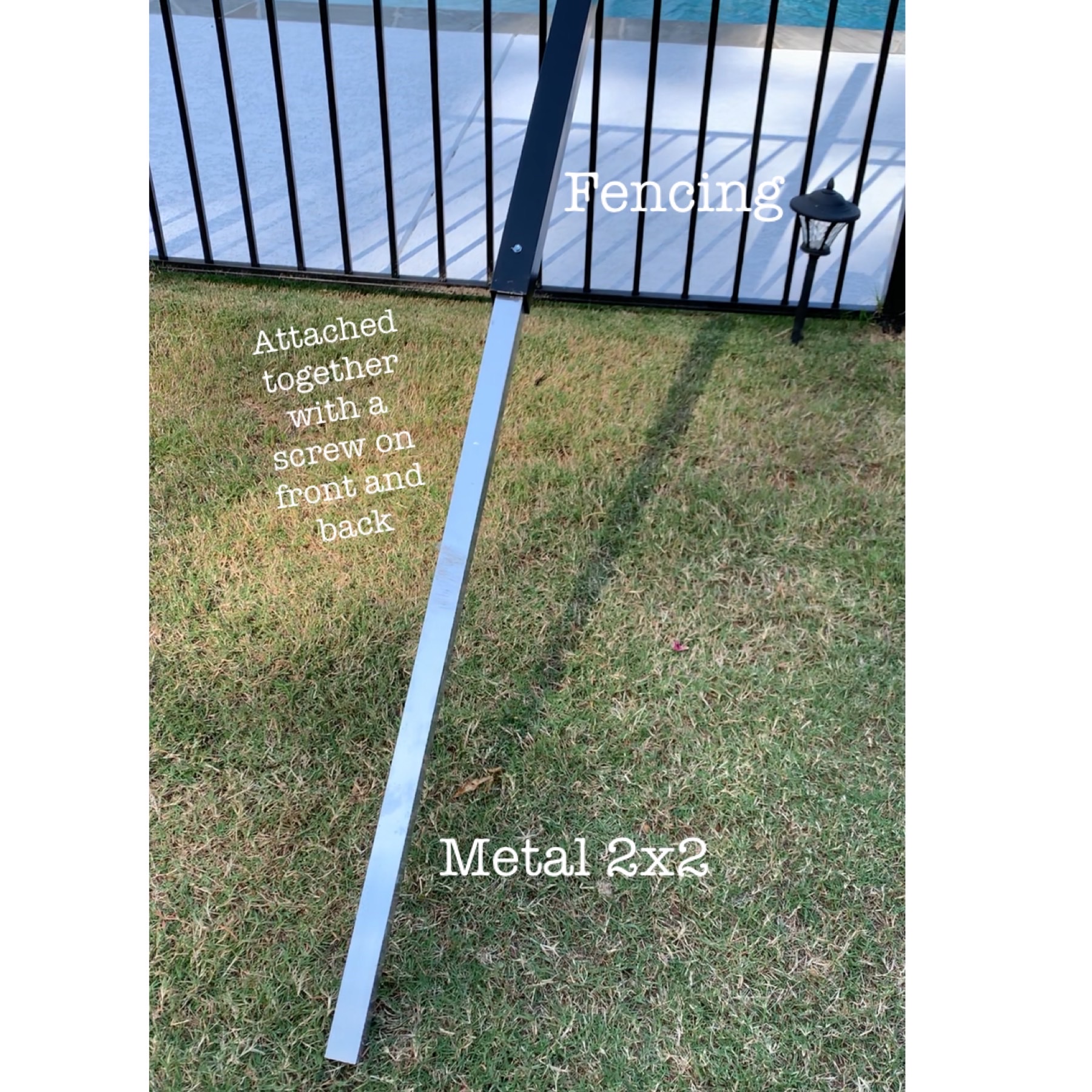 Our fence around the pool is built in metal sections. My husband came up with the genius idea of using a 2×2 piece of metal and an additional piece of fencing together to extend sections high into the air.