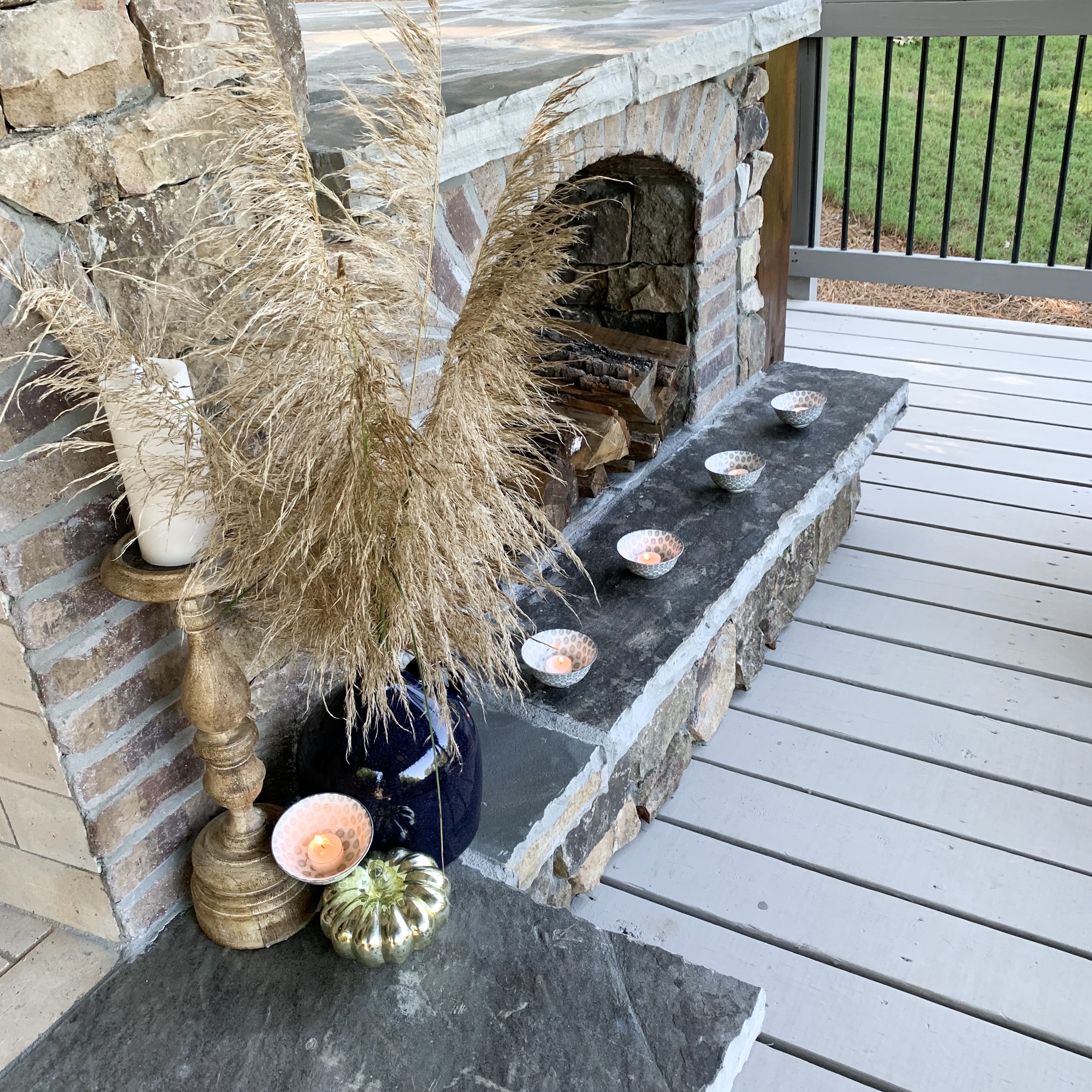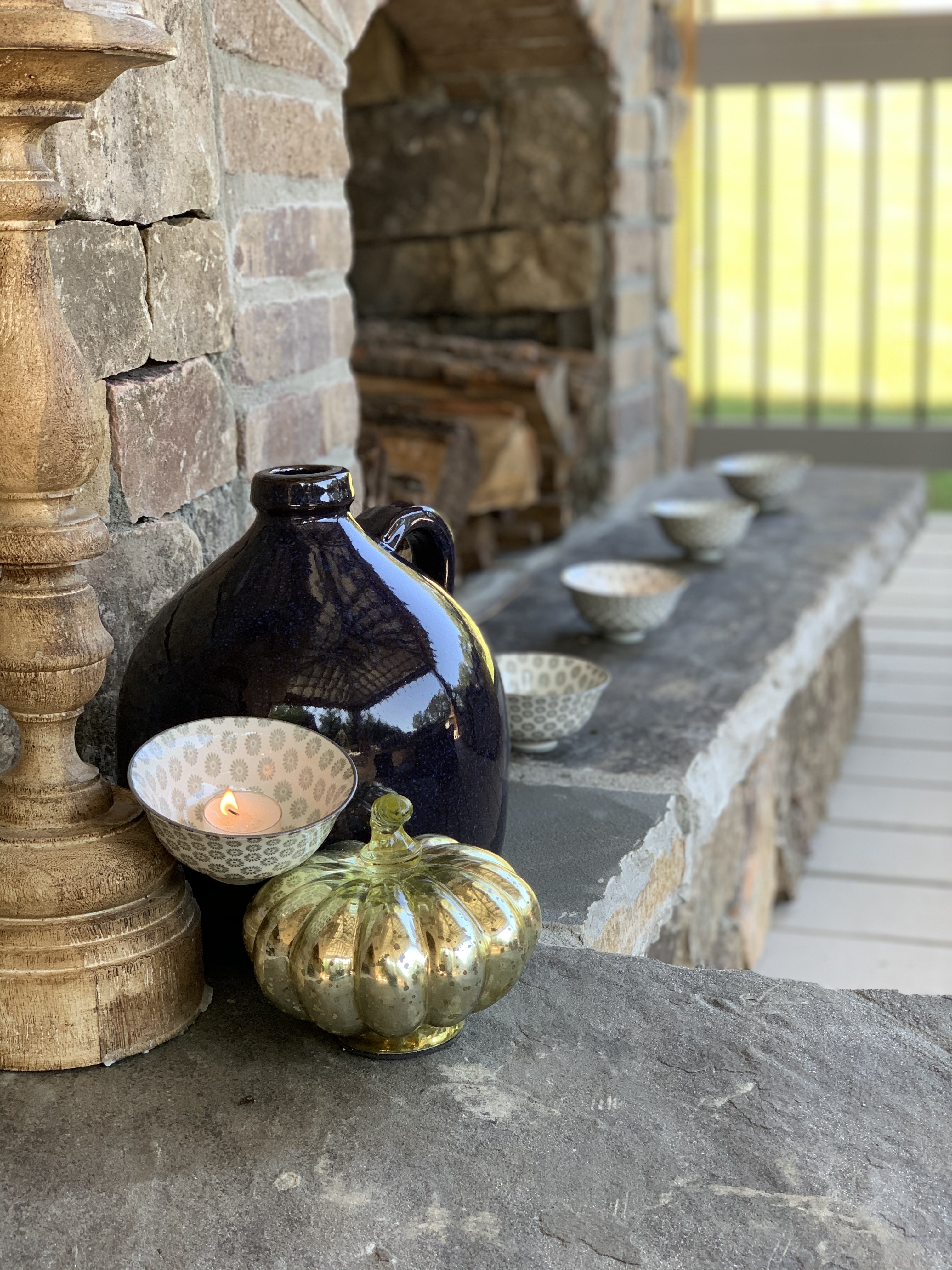 Candles and fall are two things that co-exist in unity together in my head. The days get shorter, and we seek warmth and light more than in the summer. Candles bring so much extra energy to a space. I’ve always oriented towards lanterns for outdoor spaces, until I found a wee little bowl that inspired me.