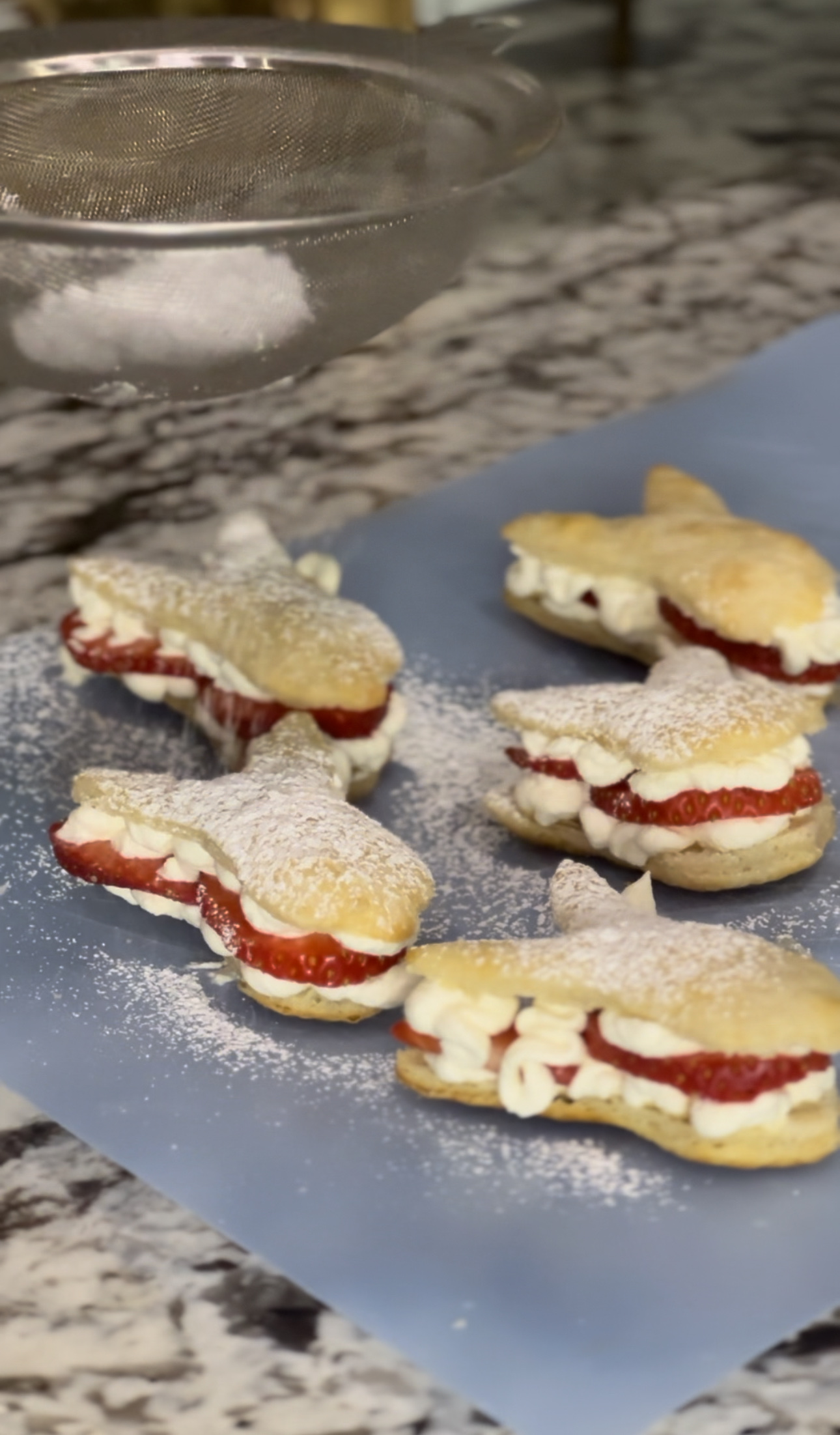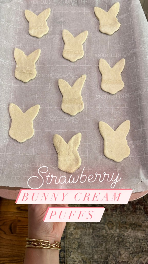 Cream puffs are a personal favorite, but this my first time making them myself. I want to experiment at some point with making my own dough. For now, I used a frozen puff pastry sheet from the store. It was really as simple as cutting the shapes, in this case bunnies, but easily could be any other shape.