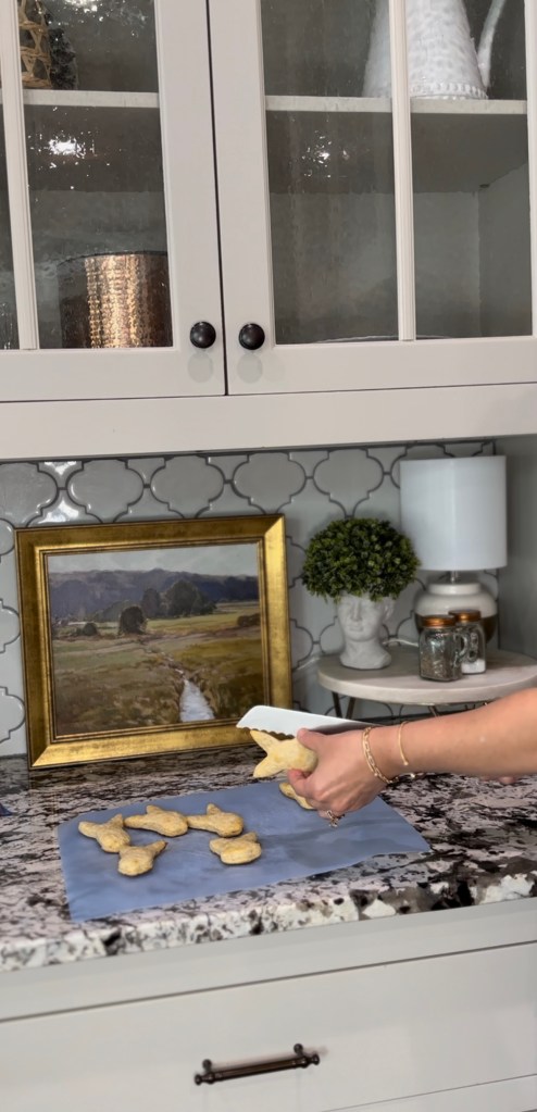 Just lay the thawed dough flat and begin cutting shapes. I did try to roll out the cut offs after in order to maximize the dough. Those didn’t turn out as well, but were still ok. They didn’t turn out at all when I tried the third roll out. Edible, but rather ugly.