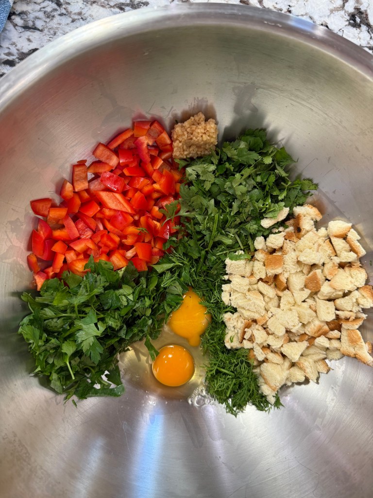 The HERBS tho! I swear this is the main component that makes this recipe special. So fresh and flavorful, where as most burgers are heavy and typical this one is far from it. The cilantro, dill, and parsley are a unique combo that adds the best depth of flavor.